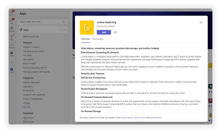 Create and manage lab environments directly within Microsoft Teams. Automatically create Teams channels or add Loome to existing teams through the marketplace app, enabling better collaboration between educators and students.